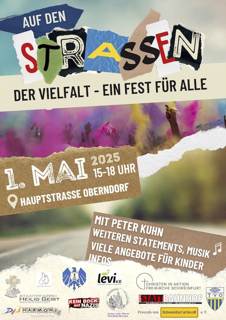 Die Oberndorfer Vereine, genauer der Bürger- und Kulturverein Oberndorf, Levi, TV Oberndorf, die Pfarrei St. Josef, Christen in Aktion Schweinfurt, Ev Kreuzkirche, Stadtbahnhof, haben kein Bock auf Nazis. Gemeinsam mit der Disharmonie und dem Bündnis „Schweinfurt ist bunt“ feiern wir am 1. Mai in Oberndorf.