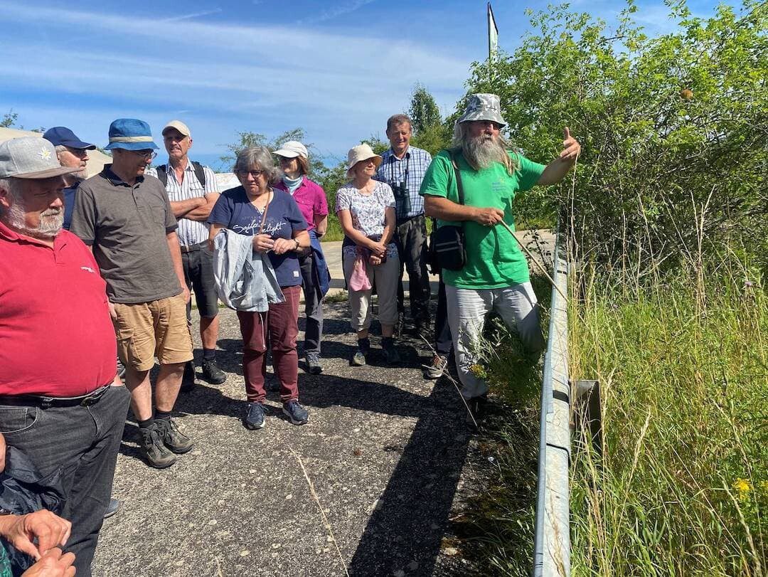 sind am Brönnhof -Treffpunkt eingetroffen. Insgesamt 200 Interessierte haben bei herrlichem Wetter an den verschiedenen Führungen auf dem interessanten Areal teilgenommen. Folgende Führungen wurden in mehreren Durchgängen angeboten: Die Flora auf dem Brönnhof (Erich Rößner),