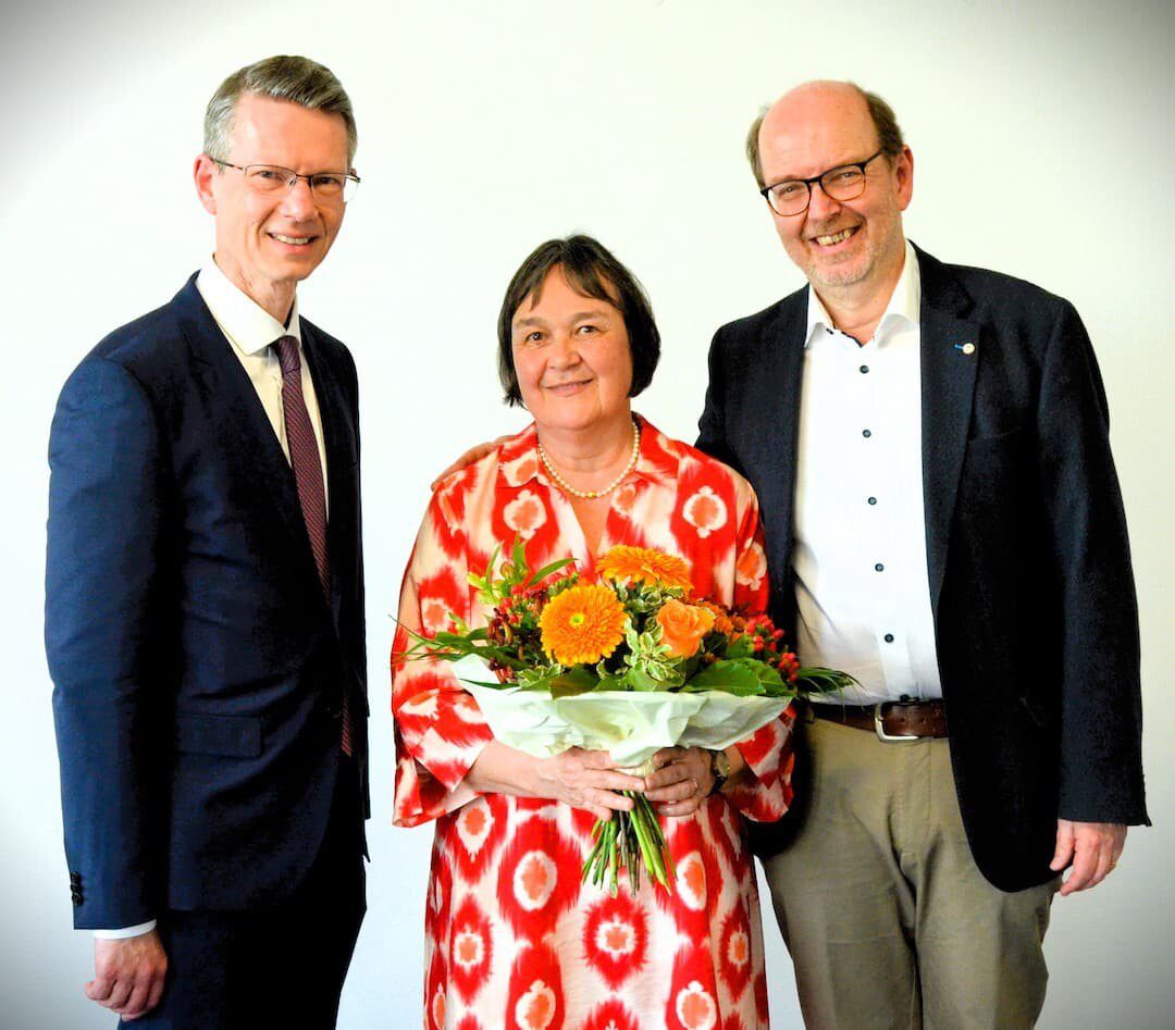 Oberbürgermeister und Aufsichtsratsvorsitzender Sebastian Remelé eröffnete den von der Künstlerin Petra Eisend musikalisch umrahmten Abend mit einem Grußwort, in dem er die vielen Verdienste Mühlers um das städtische Krankenhaus und dessen ehrenamtliches gesellschaftliches Engagement hervorhob. Der ärztliche Direktor des Leopoldina-Krankenhauses Prof. Dr. Karl Mischke ging in seiner Laudatio neben den medizinischen Leistungen Mühlers vor allem auch auf dessen herausragende Kollegialität über Fach- und Berufsgruppen hinweg ein. Mühler der nach dem Studium der Medizin an der Universität Würzburg und den ersten Berufsjahren dort ans Leopoldina wechselte, habe es immer verstanden, wissenschaftlich auf dem aktuellen Stand zu bleiben und sein umfangreiches Wissen an seine Mitarbeiterinnen und Mitarbeiter weiterzugeben. Mit Sicherheit ein Grund dafür, dass viele langfristig am Leopoldina-Krankenhaus geblieben sind und Mühlers Weg begleitet haben.