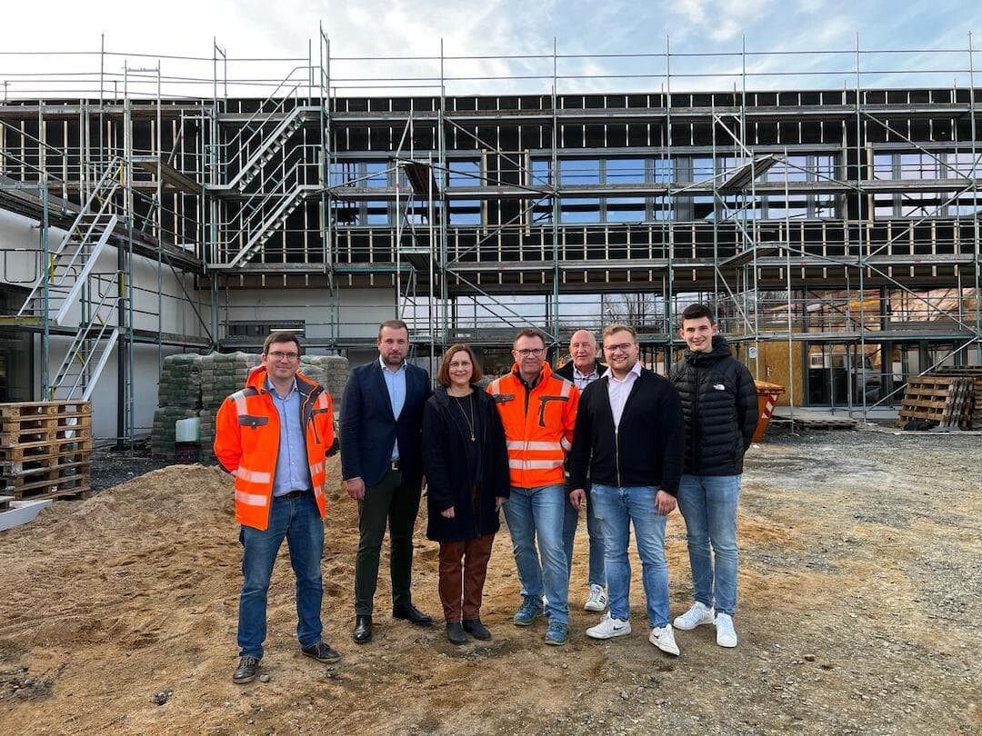 Das Gebäude wird an der benachbarten Energiezentrale angeschlossen und produziert durch Photovoltaik auf dem Dach Eigenstrom. Eine zentrale Lüftungsanlage sorgt für ein perfektes Raumklima, aber auch dafür, dass die Räume im Sommer gekühlt werden können. Das Oberflächenwasser wird aufgefangen und zur Bewässerung genutzt. Und natürlich werden alle Klassenräume mit modernster Unterrichtstechnik ausgestattet. Die etwa 70 Besucher der Baustelle, darunter auch Schüler waren begeistert von den Möglichkeiten, die das neue Gebäude bietet.