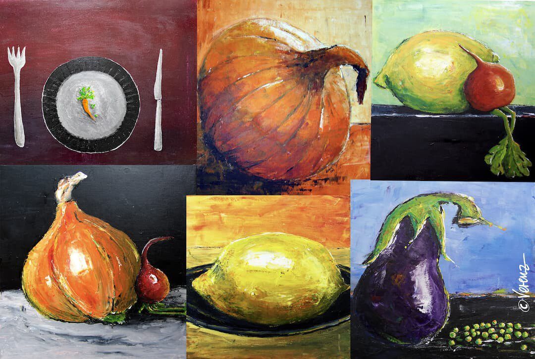 Nicht nur zum Anschauen und Nachdenken, sondern auch zum Mitmachen regt Verena Kühnlein an. In der Ausstellung zeigt sie Bilder zu mehreren Themen, wie „Unterwasser-Welten“, „Happy-Nature“, „Humoristische Gemüse-Portraits“ und außergewöhnliche „Kochrezept-Gemälde“. Zu letzterem bietet sie auch einen Workshop am 13. Juli 2024 im Kunsthandwerkerhof an. Informationen hierzu finden Sie unter www.stadtlauringen.de/kunsthandwerkerhof .