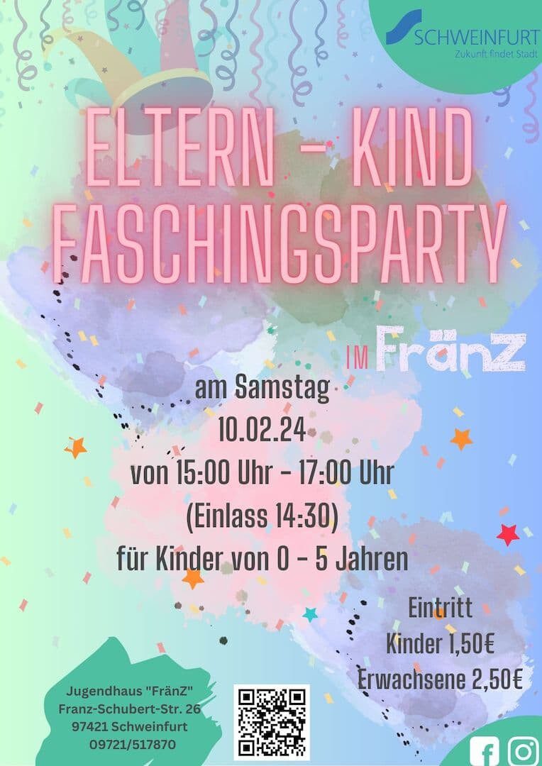Gestartet wird am Freitag, den 09.02.24 ab 18 Uhr mit der FränZ Faschingsdisco für alle Jugendlichen ab 12 Jahren. Wer verkleidet kommt erhält kostenfreien Eintritt. Die Veranstaltung endet gegen 22:00 Uhr und ein Ausweis muss vorgelegt werden.