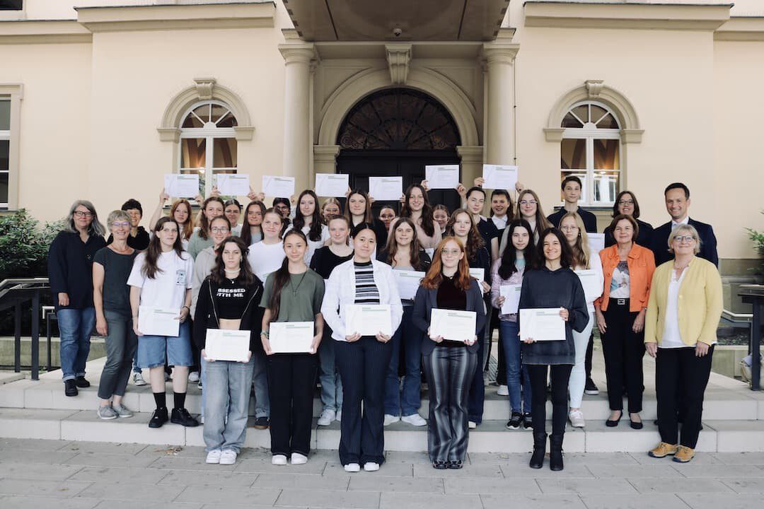 Nach den Dankesworten auch seitens der Teilnehmenden des Projekts für die große Unterstützung im Hintergrund, überreichte Landrat Florian Töpper die Zertifikate, die das große Engagement der 41 Schülerinnen und Schüler am Celtis-Gymnasium und an der Wilhelm-Sattler-Realschule bescheinigen. „Schirmherr eines so besonderen Schulprojektes zu sein, freut mich sehr. Mit der Entscheidung für dieses Projekt macht ihr klar: Ihr möchtet euch einbringen und euren Teil dazu beitragen, dass wir eine starke und vielfältige Gesellschaft bleiben. Für dieses vorbildliche Engagement bedanke ich mich sehr bei euch allen“, sagte Landrat Töpper bei der Übergabe.