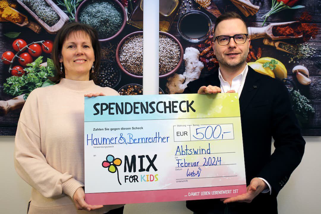 Abtswind – Soziales Engagement liegt der Firma Haumer & Bernreuther am Herzen. Regelmäßig unterstützt das inhabergeführte Gewürz- und Kräuterunternehmen aus Abtswind regionale Projekte mit Geld- und Sachspenden. Nun darf sich Mix for Kids über 500 Euro freuen. Geschäftsführerin Stephanie Weber überreichte einen symbolischen Scheck an den stellvertretenden Vorsitzenden des gemeinnützigen Vereins, Bernhard Mix, der sich im Namen der geförderten Kinder und Jugendlichen für die Spende bedankte. Mix for Kids unterstützt in Deutschland, Albanien und Indien sozial benachteiligte Mädchen und Jungen, um ihnen ein lebenswertes Leben zu ermöglichen.