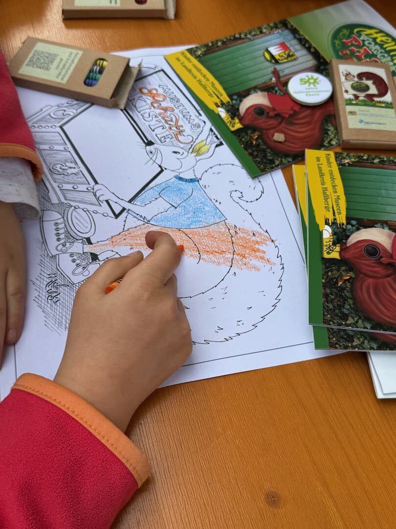 Neben einem Museumsquiz und einem Video des Maskottchens Emil unter www.regionalmanagement-hassberge.de/heimatforscher-pass/ gibt es auch immer wieder Sonderaktionen in einigen Museen. So konnten sich beispielsweise junge Besucherinnen und Besucher beim Jubiläumsfest des Heimatmuseums Ebern oder dem Feuerwehrfest am Feuerwehrmuseum in Mechenried Sonder-Wissensnüsse verdienen, indem sie sich auf die Suche nach der goldenen Nuss machten oder eigene Kunstwerke von Emil im Museum malten. Auch der Historische Kaufladen Friesenhausen wird zukünftig Zusatzaktionen zum Heimatforscher-Pass anbieten.