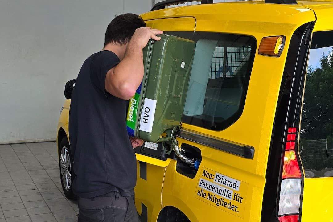 Getestet wurde neben Skoda Superb Combi 2.0 TDI, BMW 520d Touring und Mercedes E 220 d T-Modell auch der VW Caddy 2.0 TDI, der ab sofort die Flotte der ADAC Straßenwacht ergänzt. Die Pannenhelferinnen und -helfer des ADAC tanken ihre Fahrzeuge schon heute nach Möglichkeit mit HVO100.