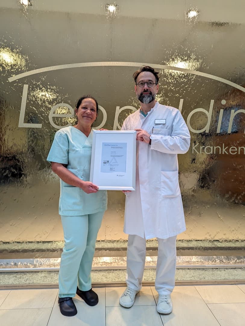 Schweinfurt – Kerstin Mock (Urologische Ambulanz) ist seit kurzem „Kontinenzmanager-Fachkraft für Kontinenzförderung“. Dr. Alexander Krebs (Chefarzt der Klinik für Urologie und Kinderurologie) gratulierte der erfahrenen Pflegefachkraft aus der Uro-Ambulanz, auch im Namen der Klinikleitung: „Ich freue mich, dass Frau Mock die Weiterbildung erfolgreich absolviert hat und unsere Klinik, die bereits seit dem Frühjahr 2023 anerkannte Beratungsstelle der Deutschen Kontinenzberatung ist, jetzt mit ihrem Fachwissen verstärkt.“