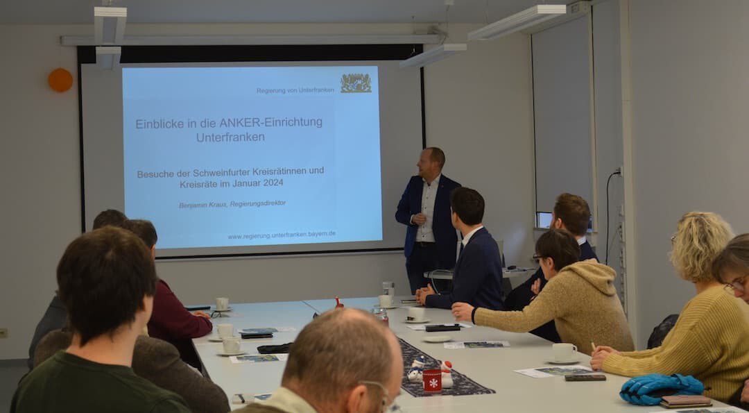 Auch für die Mitglieder des Kreistags stand Kraus zur Verfügung, die sich vor Ort über die aktuellen Strukturen und Prozesse der unterfränkischen Erstaufnahme-Einrichtung informieren wollten. Im Januar organisierte Steffen Beutert, Leiter des Sozialamts im Landratsamt Schweinfurt, insgesamt drei Besuche für die Mitglieder des Kreistags, vor Ort an der ANKER-Einrichtung. Am 30. Januar fand der letzte Termin statt. Insgesamt nahmen Vertreterinnen und Vertreter aller Fraktionen teil.