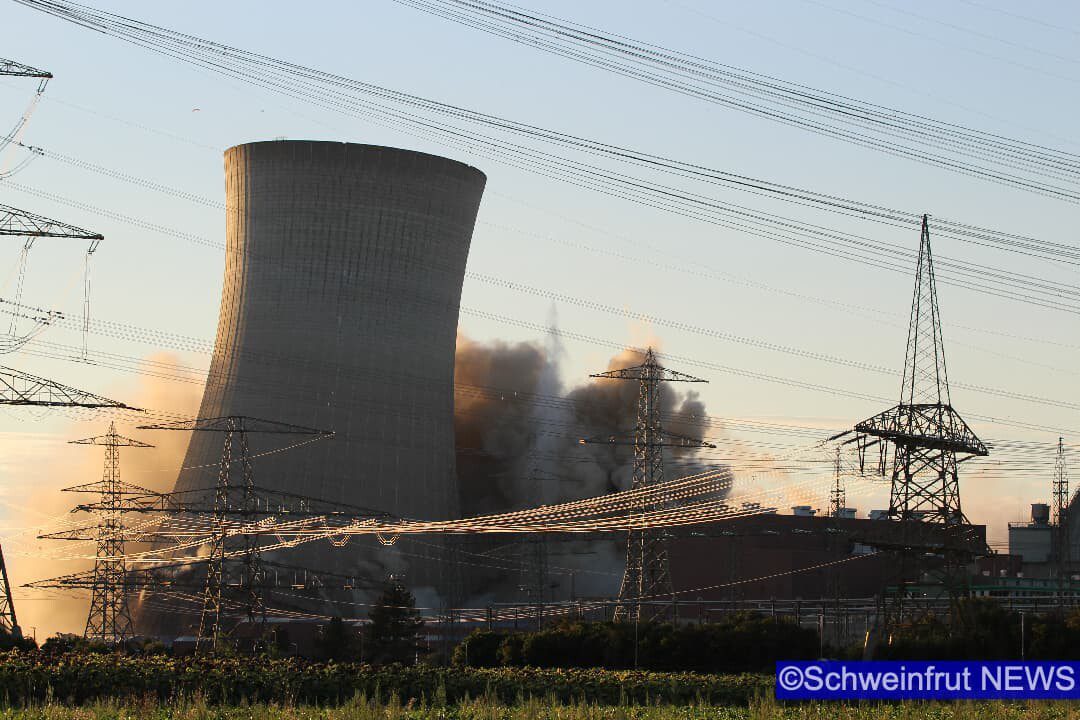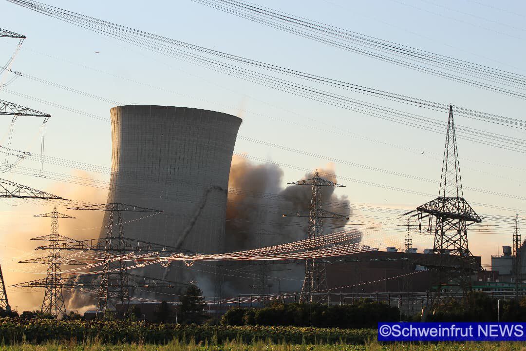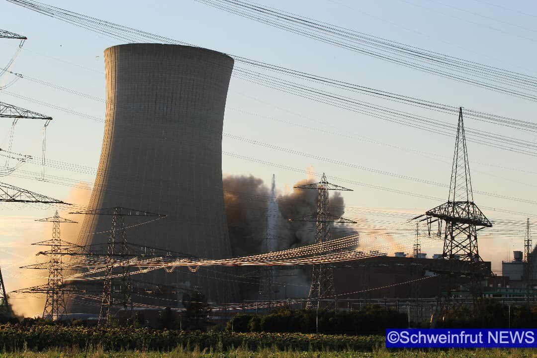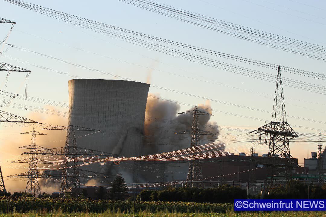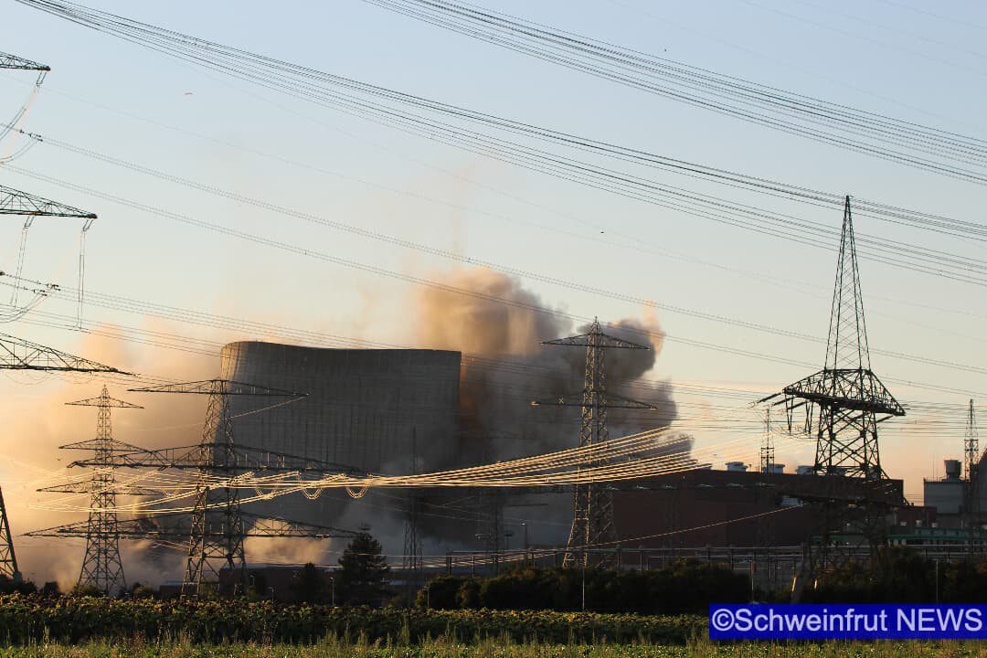 Schweinfurt/Grafenrheinfeld – Am 16. August um 19.55 Uhr wurden die beiden Kühltürme des Kernkraftwerks Grafenrheinfeld (KKG) erfolgreich und sicher zum Einsturz gebracht. Der Sprengabbruch verzögerte sich aufgrund einer Protestaktion eines 36 Jahre alten Mannes. Die Klärung strafrechtlicher Verstöße ist Gegenstand polizeilicher Ermittlungen. Ob und in welcher Höhe zivilrechtliche Forderungen durch die Beteiligten geltend gemacht werden können, wird ebenfalls geprüft. Durch den schnellen und konsequenten Einsatz der Polizeikräfte konnte der Mann gesichert werden und der Sprengablauf wurde neu gestartet. Der Abbruch wurde durch zwei gezielte Sprengungen im unteren Bereich der Türme eingeleitet. Dadurch fielen exakt um 19.55 Uhr zunächst der nördliche und ca. 15 Sekunden später der südliche Kühlturm in sich zusammen. Beide Türme kamen wie geplant an Ort und Stelle auf dem Boden auf.