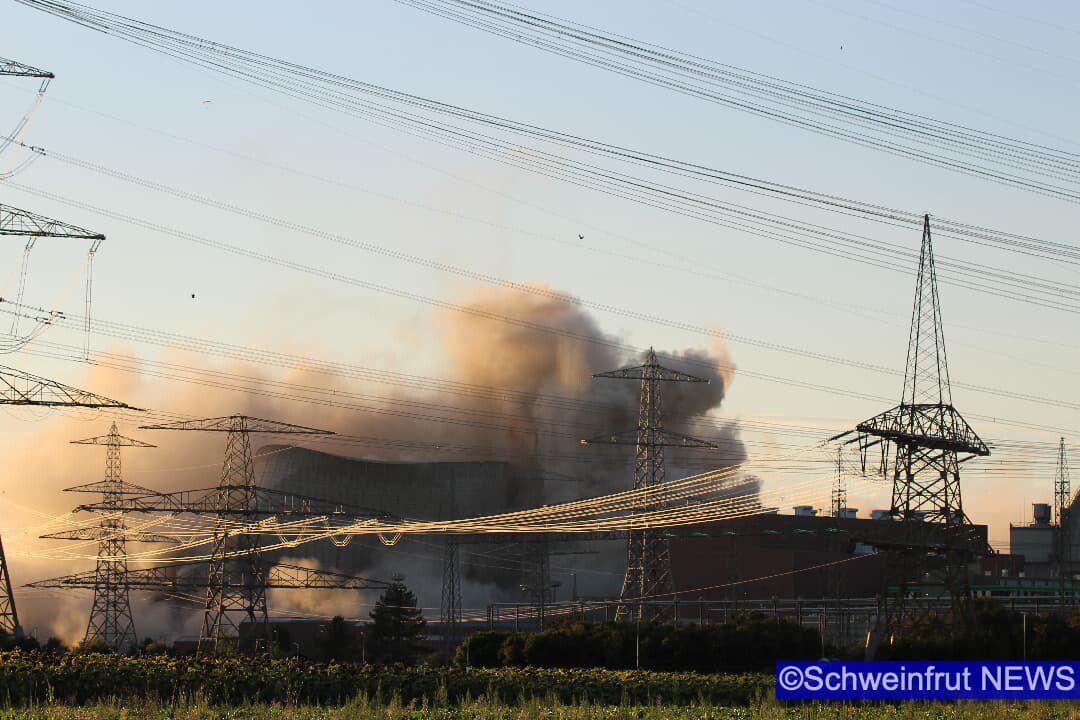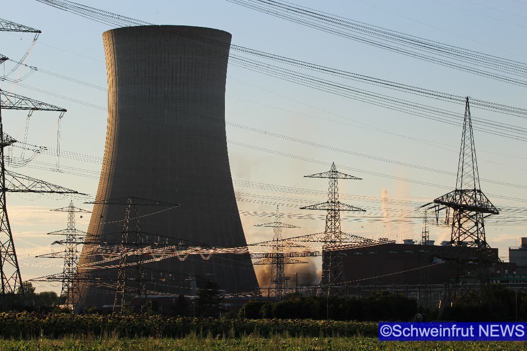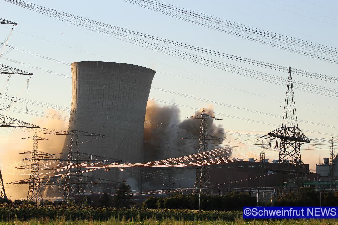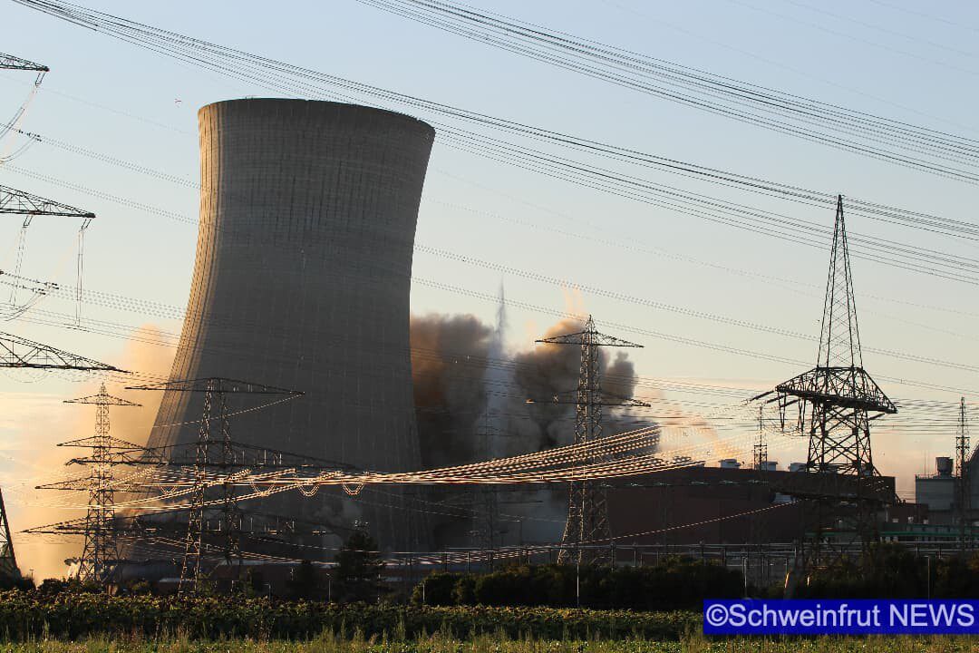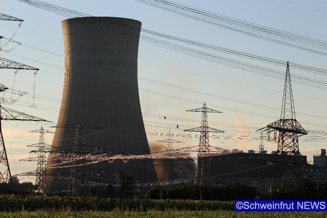 Schweinfurt/Grafenrheinfeld – Am 16. August um 19.55 Uhr wurden die beiden Kühltürme des Kernkraftwerks Grafenrheinfeld (KKG) erfolgreich und sicher zum Einsturz gebracht. Der Sprengabbruch verzögerte sich aufgrund einer Protestaktion eines 36 Jahre alten Mannes. Die Klärung strafrechtlicher Verstöße ist Gegenstand polizeilicher Ermittlungen. Ob und in welcher Höhe zivilrechtliche Forderungen durch die Beteiligten geltend gemacht werden können, wird ebenfalls geprüft. Durch den schnellen und konsequenten Einsatz der Polizeikräfte konnte der Mann gesichert werden und der Sprengablauf wurde neu gestartet. Der Abbruch wurde durch zwei gezielte Sprengungen im unteren Bereich der Türme eingeleitet. Dadurch fielen exakt um 19.55 Uhr zunächst der nördliche und ca. 15 Sekunden später der südliche Kühlturm in sich zusammen. Beide Türme kamen wie geplant an Ort und Stelle auf dem Boden auf.