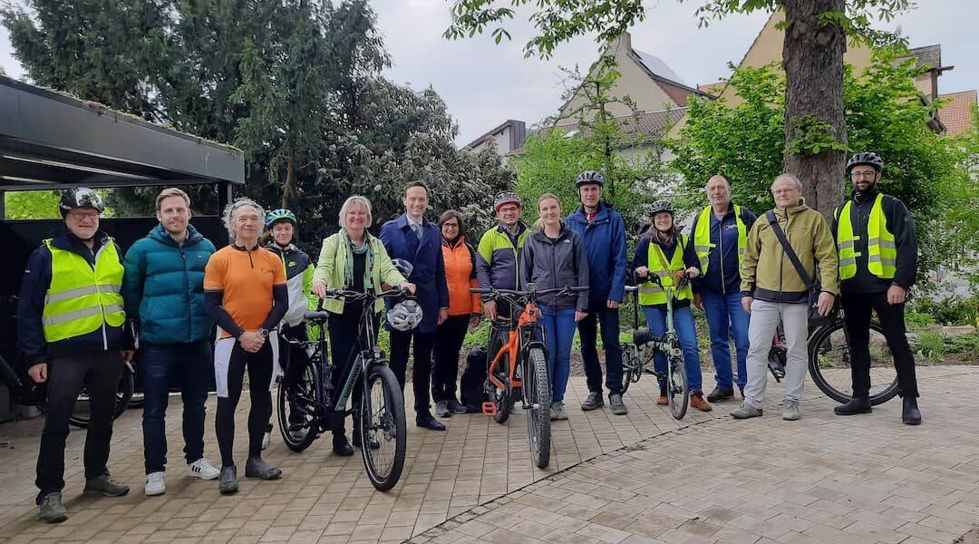 Neben Landrat Florian Töpper, stellvertretendem Landrat Thomas Vizl und der Radverkehrsbeauftragten nahmen am Termin weitere Mitarbeitende aus dem Landratsamt teil sowie Vertreter des Staatlichen Bauamts, des örtlichen ADFC und der Verkehrswacht.