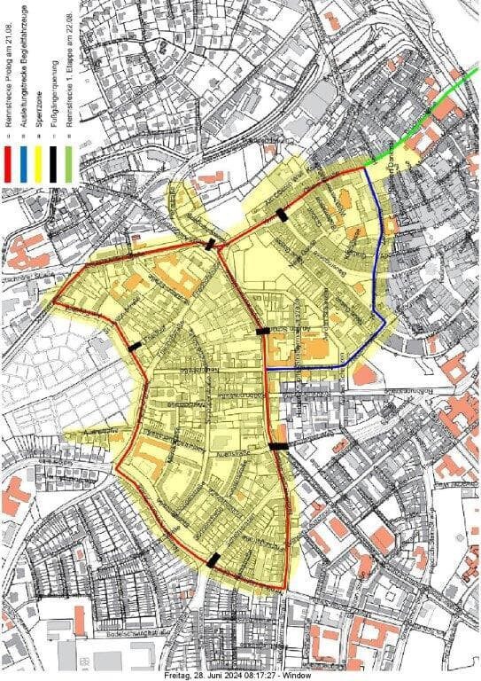 - Am Donnerstag gelten die Sperrungen vom Vortag weiterhin für den Marktplatz und die Brückenstraße bis voraussichtlich 16:30 Uhr sowie für die Bauerngasse, Am Zeughaus, Zehntstraße, Manggasse und Parkplatz Kirchgasse bis 13:00 Uhr. Entlang der Strecke der 1. Etappe wird es lediglich während des Rennens zu kurzen Sperrungen von max. 30 Minuten kommen.