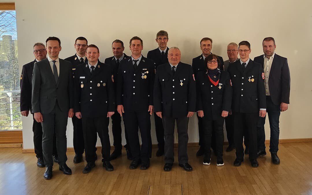 Geehrt wurden für 25 Jahre aktiven Dienst: Ulrich Römmelt, Sabine Weck, Sebastian Hebeler und für 40 Jahre: Matthias Schwab, Thomas Schmitt, Günter Schleicher, Bernhaard WEth, Friedbert Mitesser, Thomas Lindner, Barbara Spahn und Thomas Vollert.