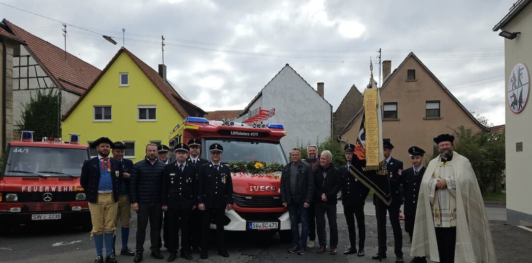 Schonungen – Erst vor gut einem Jahr wurde das neue Bürgerhaus mit Feuerwehrgerätehaus in Löffelsterz mit einem großen Fest feierlich übergeben. Zwei Millionen Euro hat Schonungen dort investiert und ein Treffpunkt für alle Generationen geschaffen. Nur ein Jahr später konnte jetzt auch schon das neue Feuerwehreinsatzfahrzeug MLF (Mittleres Löschfahrzeug) in Löffelsterz in den Dienst gestellt werden. Kommandant Bruno Liszka konnte viele Bürgerinnen und Bürger, Ehrengäste und sogar Kameraden der Partnerwehr zum Festakt begrüßen. Pfarrer Andreas Heck übernahm die Segnungszeremonie und wünschte den Floriansjüngern stets eine unfallfreie Fahrt.