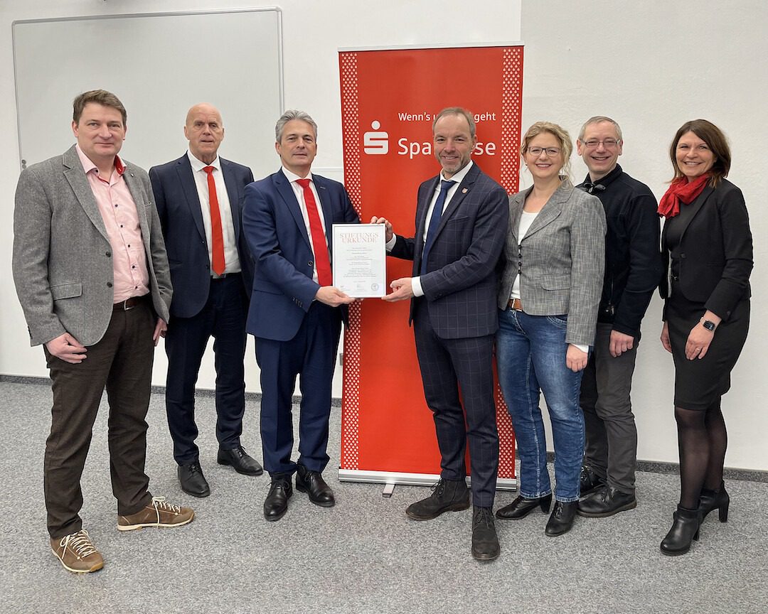 Am Montag, 22.01.2024, übergab Peter Schleich, Vorstandsvorsitzender der Sparkasse Schweinfurt-Haßberge, die Stiftungsurkunde im Rathaus in Obertheres an Bürgermeister Matthias Schneider und den Stiftungsrat.