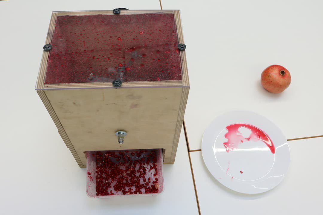 „Das Entkernen von Granatäpfeln ist von Hand sehr mühsam und es gibt keine geeigneten Hilfsmittel dazu. So kam die Idee zustande“, erzählt Prof. Dr.-Ing. Jörg Missbach. „Außerdem war es mir wichtig, für die Studierenden ein greifbares Thema aus dem Alltag zu wählen, sodass sie dieses auch zu Hause praktisch angehen können.“ Drei Studierendengruppen traten in Konkurrenz zueinander, wie man einen Granatapfel mechanisch öffnet, entkernt und dafür eine Maschine konstruiert, die diese Arbeit schneller, einfacher und sauberer als von Hand erledigt.