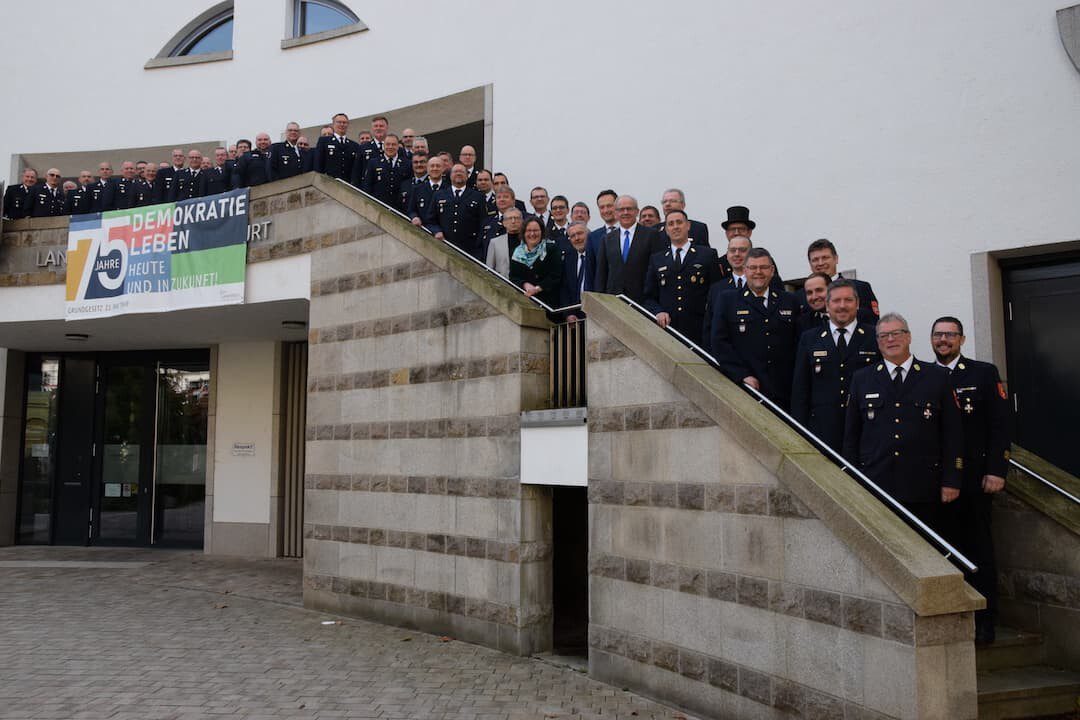Kreis- und Stadtbrandräte sowie Kreis- und Stadtbrandinspektoren aus Unterfranken zur Dienstversammlung im Landratsamt Schweinfurt