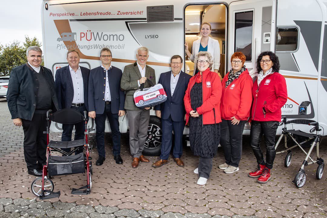 Angelika Ochs, Vorständin des Caritasverbandes für den Landkreis Rhön-Grabfeld betont: „Wir unterstützen mit dem Pflegeübungs-Wohnmobil den größten Pflegedienst, nämlich die Angehörigen – wir vermitteln damit Perspektive, Lebensfreude und Zuversicht.“