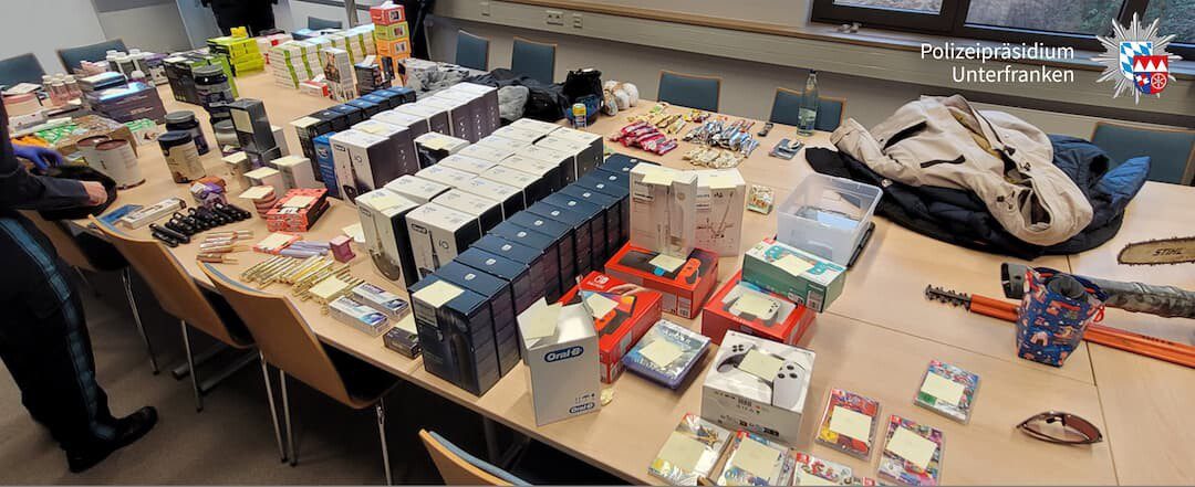 Bei dem Diebesgut handelt es sich überwiegend um hochwertige Drogerieartikel wie Rasierer, elektronische Zahnbürsten, Nintendo-Spiele und Kosmetikartikel. Weiterhin wurden auch diverse Kleidungsstücke wie beispielsweise Winterjacken sichergestellt. Ob das Diebesgut möglicherweise auch aus unterfränkischen Geschäften entwendet wurde, ist aktuell noch Gegenstand der Ermittlungen.