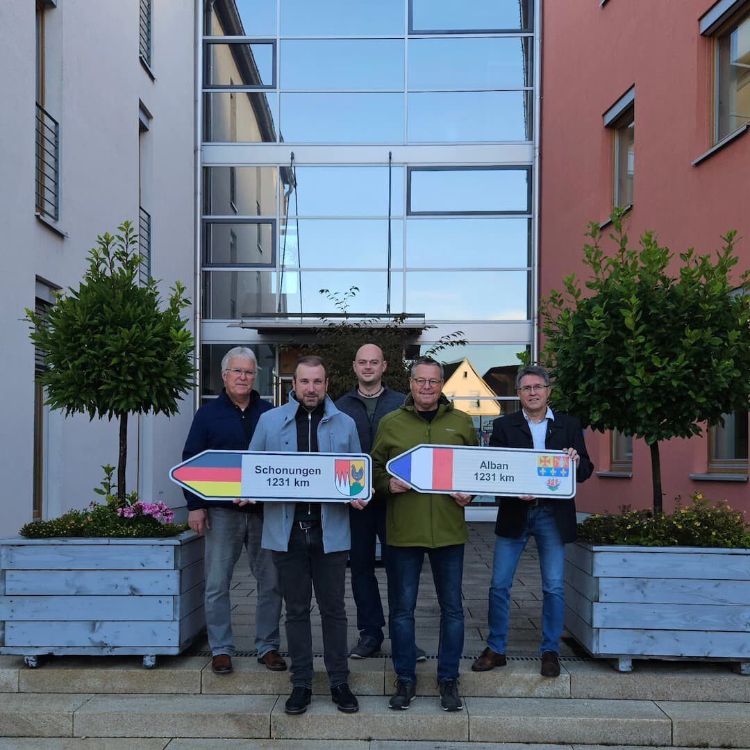 Vom 11.10.-15.10.2024 treffen sich Delegationen aus Alban und Schonungen genau in der Mitte der Wegstrecke. Drei Tage geht es nach Beaune in Burgund um gemeinsam Sehenswürdigkeiten zu besichtigen und die Partnerschaft zwischen Frankreich und Deutschland zu vertiefen. Künftig sollen zwei Wegweiser in die jeweilige Himmelsrichtung nach Schonungen bzw. Alban zeigen, um die jahrzehntelange Städtepartnerschaft ins Bewusstsein zu rufen.