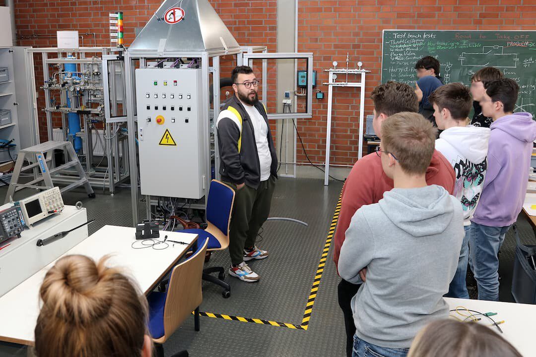 Das neue, interdisziplinäre Bildungsangebot stand unter dem Motto „Nachhaltige Energiesysteme und Wasserstoff“. Professorinnen und Professoren der Fakultäten Angewandte Natur- und Geisteswissenschaften, Elektrotechnik, Wirtschaftsingenieurwesen sowie Maschinenbau sprachen an vier Tagen über Themen wie E-Fuels, Windenergie, Wärmepumpe und Thermodynamik, Halbleiter und Photovoltaik, Batteriesysteme, Wärmenetze und kommunale Wärmeplanung, die Wirtschaftlichkeit von fossilen und erneuerbaren Kraftwerken, Chancen und Herausforderungen von Wasserstoff bis hin zu Klimawandel-Rechenmodellen und vieles mehr. Neben den theoretischen Vorträgen gab es außerdem die Möglichkeit, die Labore der THWS zu den Forschungsbereichen Wasserstoff, Robotik, Chemie, Physik, Hochspannung und Leistungselektronik zu besichtigen.