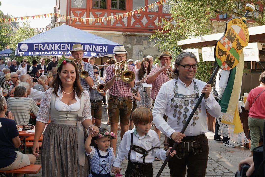 Die Zürcher Kirchweih gilt mit über 300 Jahren Tradition immerhin als eine der ältesten Unterfrankens und zeichnet sich neben der Stadteilromantik eben durch das Flair der Straßenmusikkapellen, welche von Tisch zu Tisch ziehen aus.