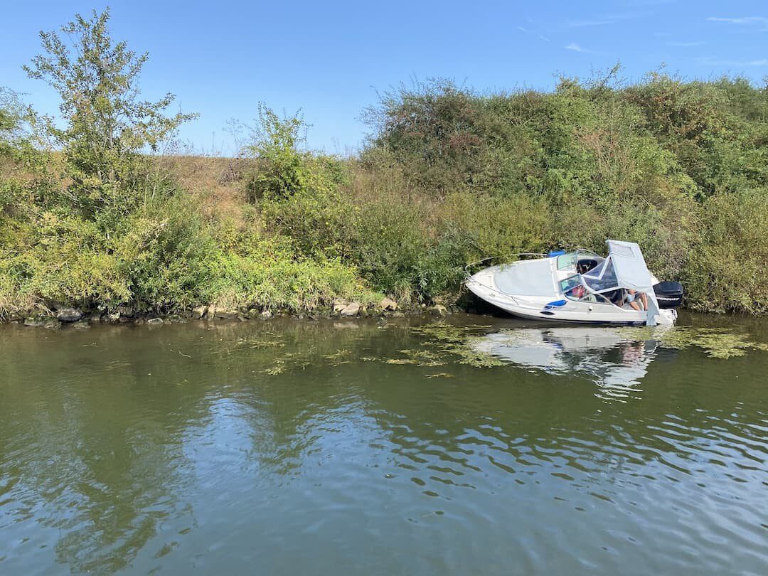 So kam am Mittag des gestrigen Sonntags, unterhalb der Schleuse Knetzgau, eine über 5 m lange Motorjacht aus der Fahrrinne und fuhr in ganzer Länge auf das Ufer. Es stellte sich bei Ermittlungen der umgehend am Ort eingetroffenen Bootsstreife der WSP Schweinfurt heraus, dass es sich um einen individuellen Fahrfehler handelte, da der Bootsführer eine Bootsinsassin ans Steuer ließ, die nicht in Besitz einer Fahrerlaubnis für das Sportboot war. Rechtlich ist das zwar durchaus möglich, leider konnte sie das gut motorisierte Fahrzeug bei einem Ausweichmanöver aber nicht mehr auf dem Wasser halten und setzte mit dem gesamten Bootskörper in der Uferböschung auf.