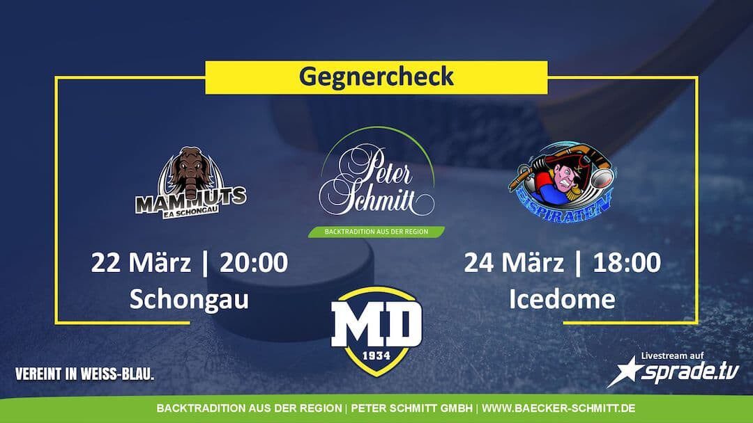 Am Sonntag Abend folgt dann vor heimischer Kulisse ein möglicherweise entscheidendes Spiel gegen den aktuellen Tabellenletzten der Abstiegsrunde, den ESC Dorfen. Die Eispiraten konnten bisher fünf Punkte erbeuten, und sind damit sechs Zähler hinter den Mighty Dogs. Mit einem Heimsieg könnte das Team um Headcoach Semjon Bär möglicherweise die Vorentscheidung im Abstiegskampf erzwingen und wäre vom ESC nicht mehr einholbar. Das Hinspiel verlor der ESC Dorfen noch deutlich mit 2:6 gegen den ERV Schweinfurt, zuletzt konnten die Eispiraten gegen Geretsried in der Verlängerung und zuvor im Heimspiel gegen Schongau wieder wichtige Punkte im Abstiegskampf einfahren. Die Mighty Dogs sind aktuell seit sechs Spielen ohne Sieg und brauchen dringend die Unterstützung vor heimischer Kulisse, um die entscheidenden Punkte im Abstiegskampf gegen den direkten Konkurrenten zu holen. Spielbeginn gegen den ESC Dorfen ist am Sonntag, den 24. März um 18:00 Uhr im Schweinfurter Icedome.